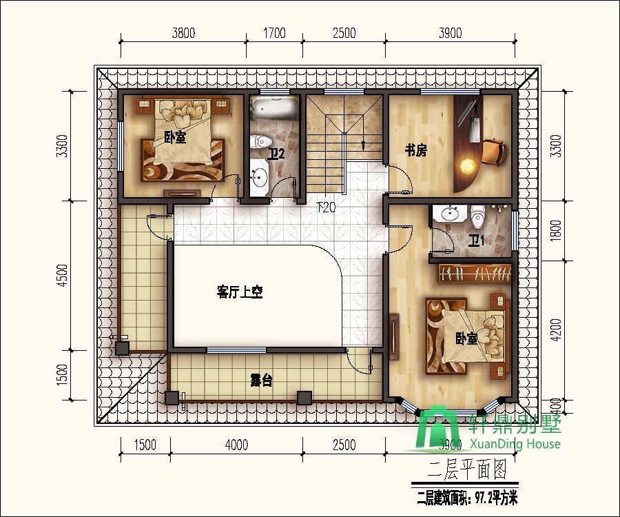 樓層層高:一層層高3.3米,二層層高3.0米。
