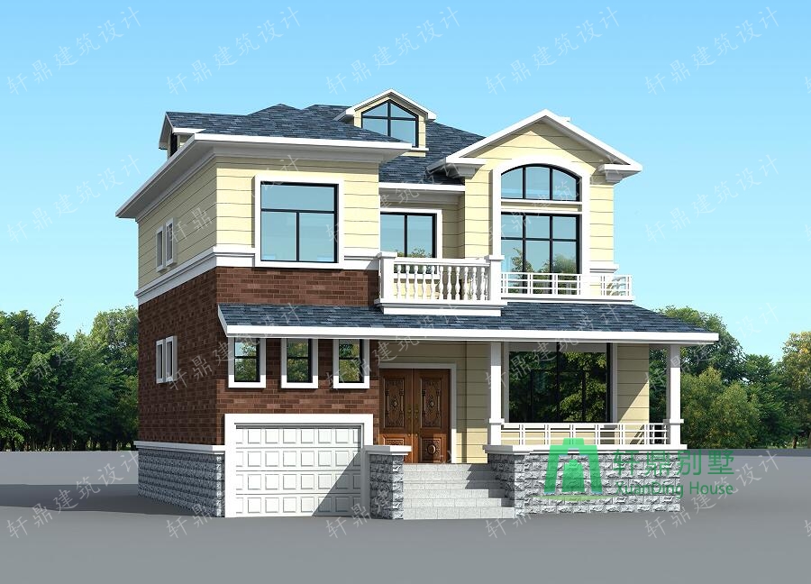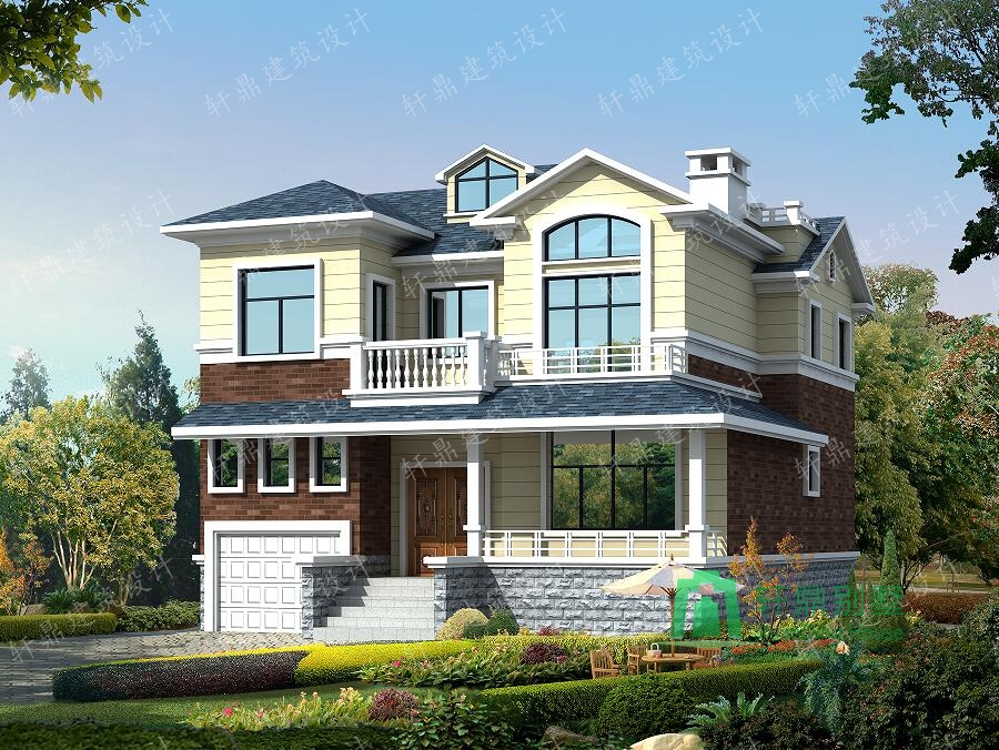 美觀實用的農村二層躍層自建小別墅設計圖,帶有室內車庫和閣樓,布局完善,是一款十分精致的設計方案。