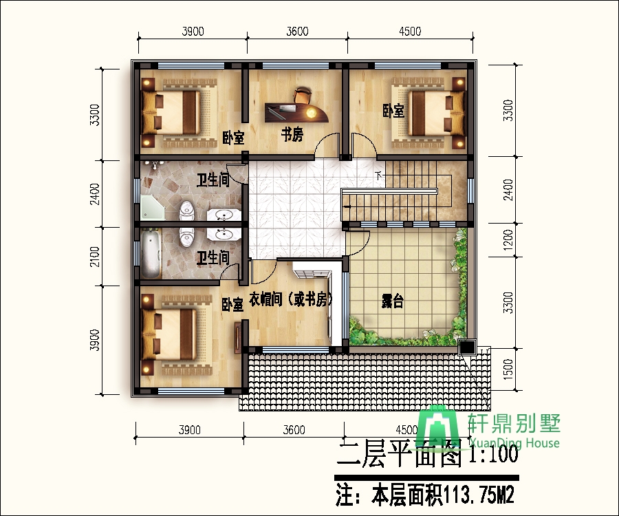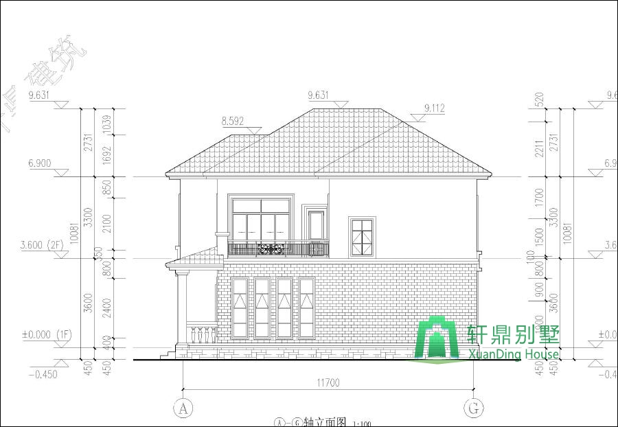 樓層層高:一層層高3.6米,二層層高3.3米。