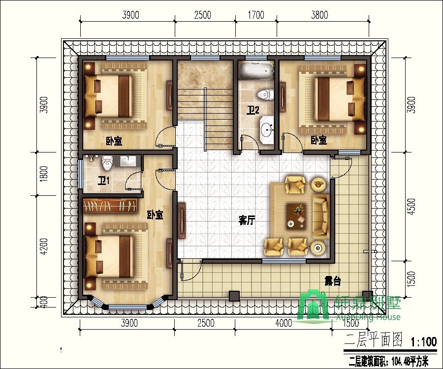 樓層層高:一層層高3.9米,二層層高3.3米。