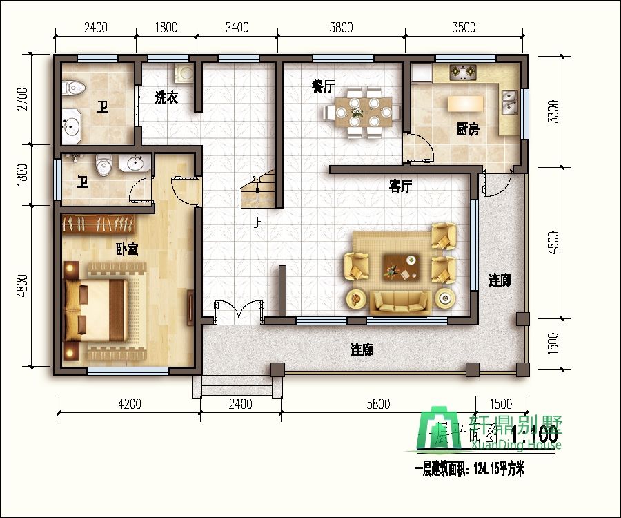 樓層層高:一層層高3.6米,二層層高3.3米。