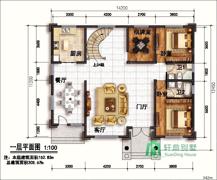 圖紙編號(hào):Z342m    圖紙價(jià)格:698    主體造價(jià):30-35萬