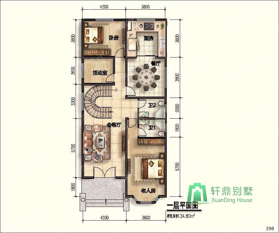 圖紙編號:Z398    圖紙價格:598    主體造價:27-33萬