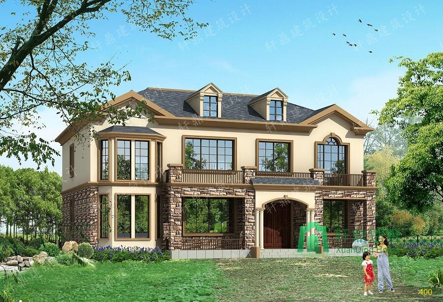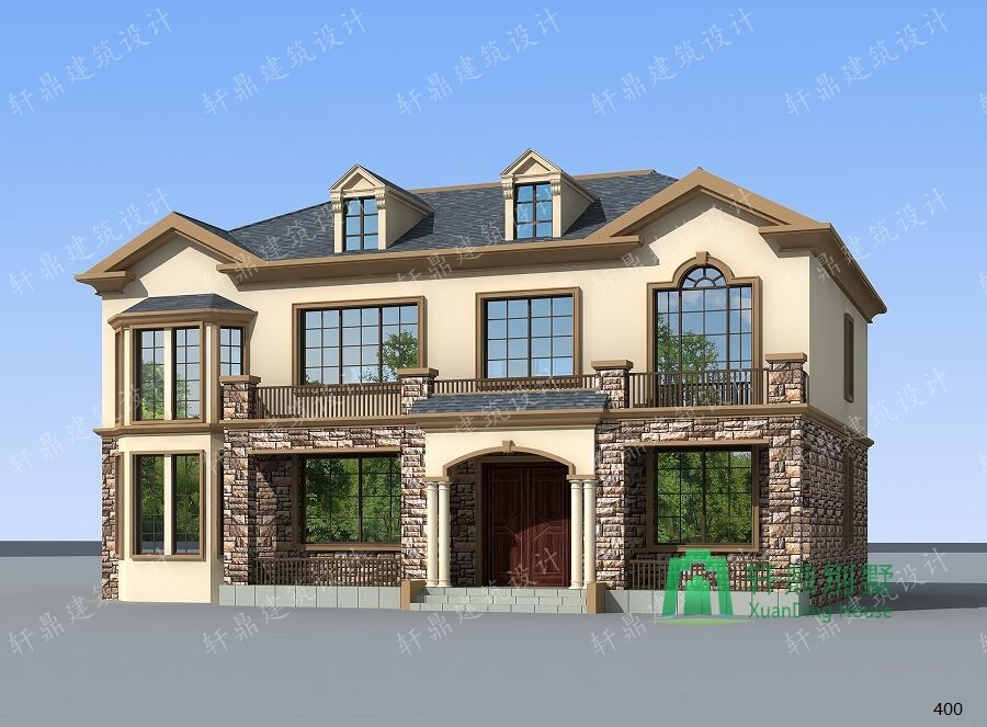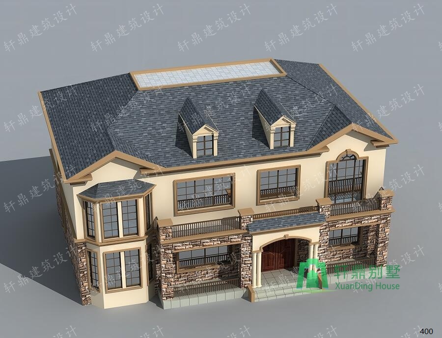 經(jīng)典配色二層復(fù)式別墅設(shè)計(jì)圖,帶有老虎窗,采光通風(fēng)良好