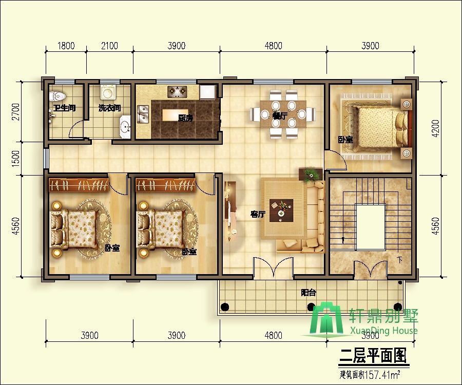 二層:客廳、廚房、餐廳、臥室3、陽臺(tái)、衛(wèi)生間。