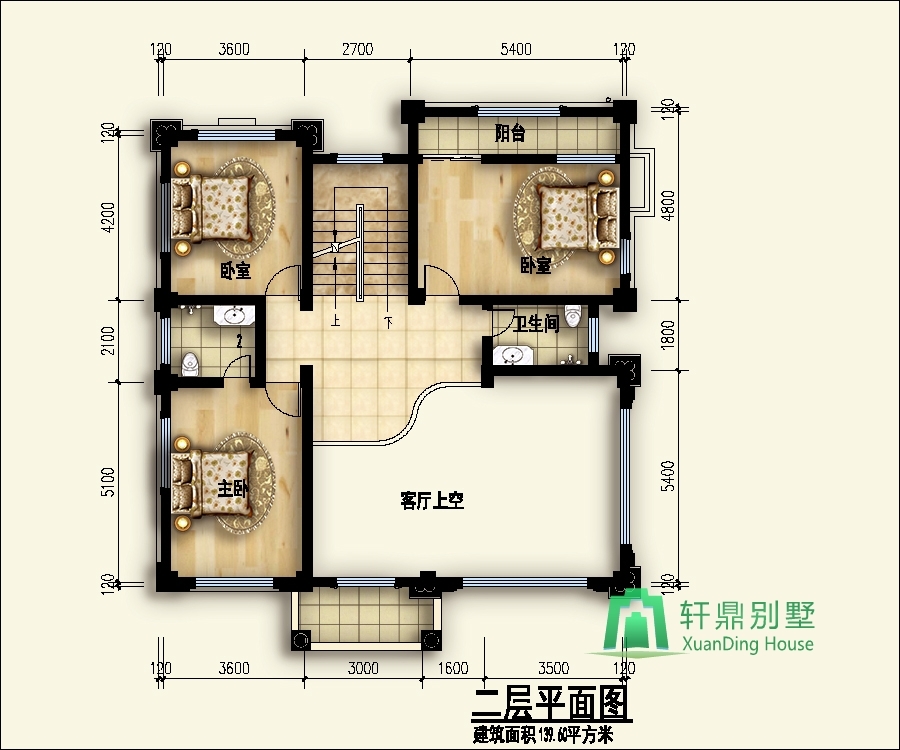 二層:臥室、衛(wèi)生間、臥室(帶陽(yáng)臺(tái))、臥室(帶衛(wèi)生間)、活動(dòng)廳。