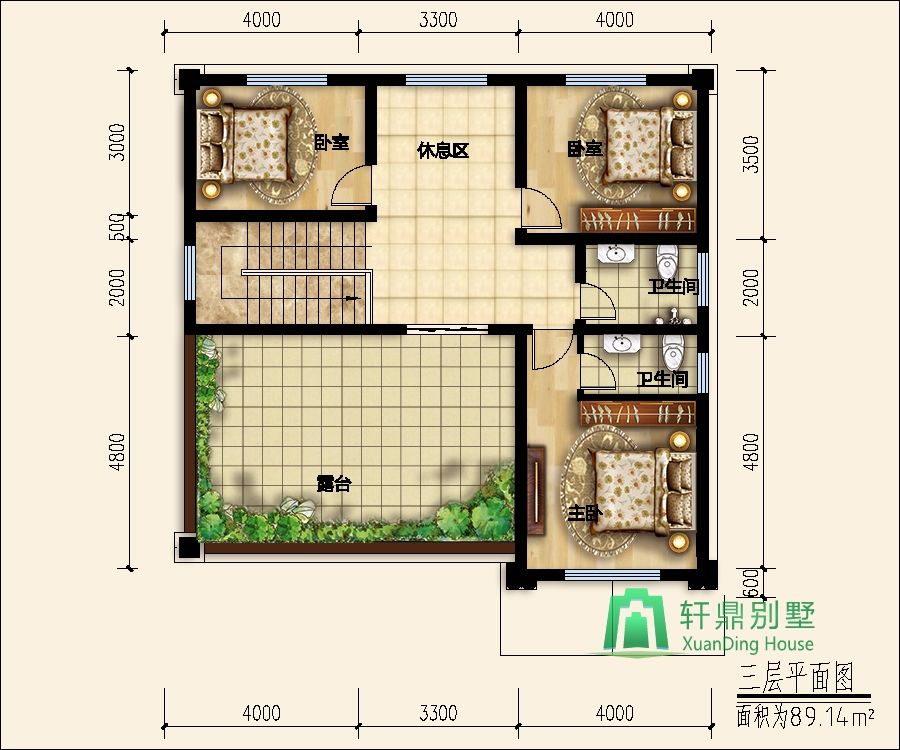 樓層層高:一層層高3.6米,二層層高3.3米,三層層高3.3米。