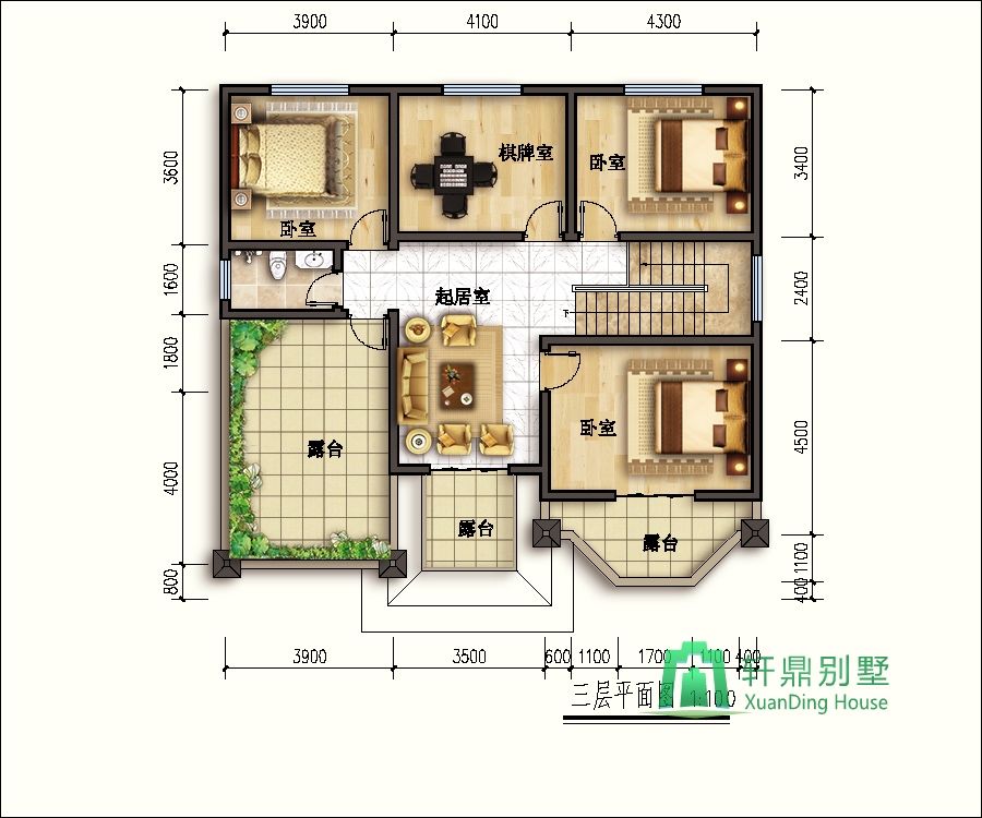 樓層層高:一層層高3.9米,二層層高3.5米,三層層高3.5米。