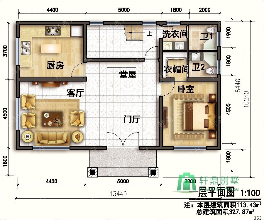 ? 占地尺寸:13.44m*10.24m