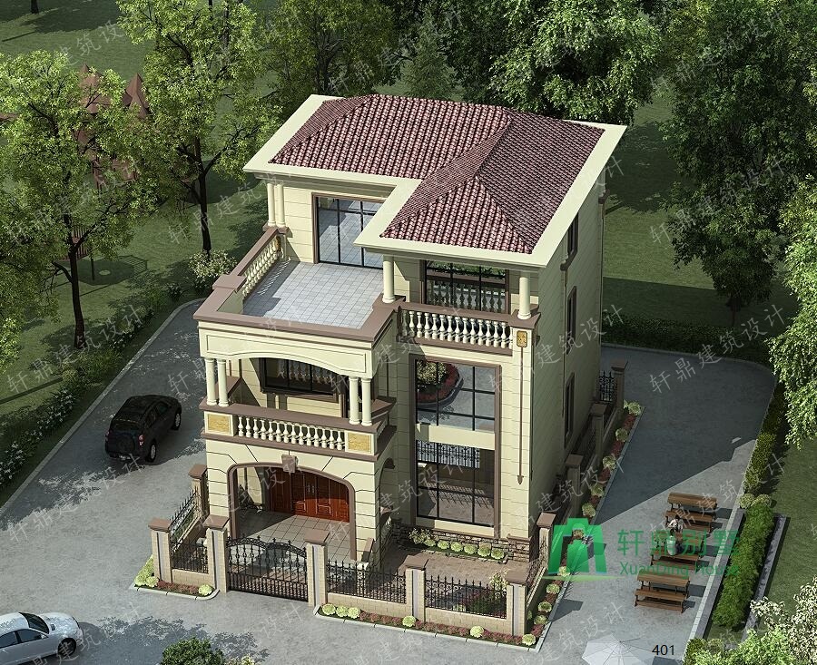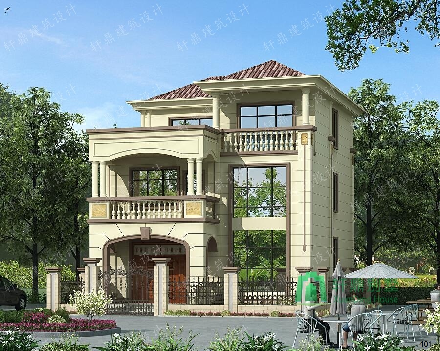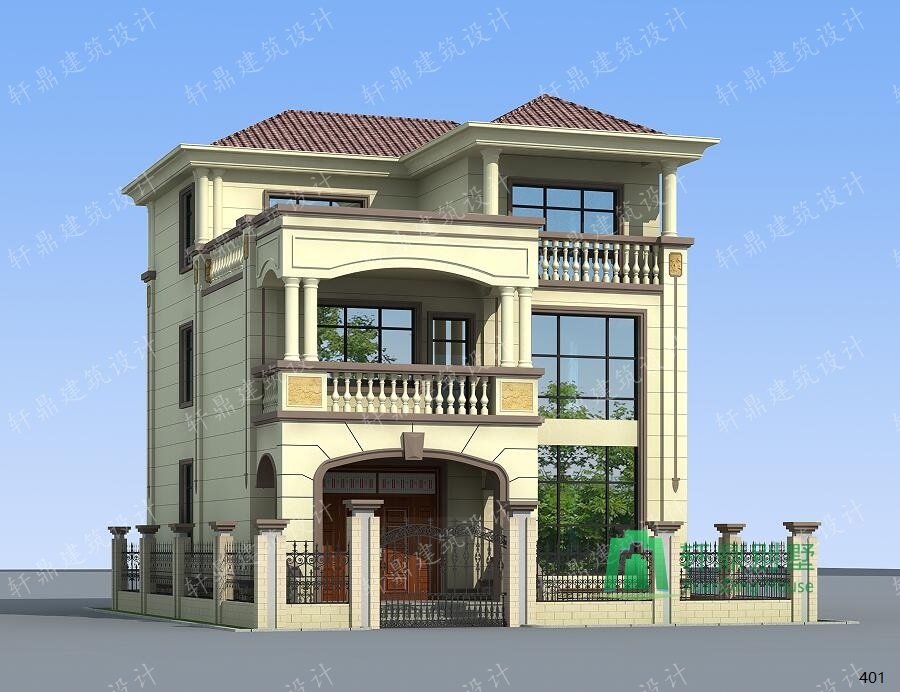 造價40萬左右的高端歐式三層自建別墅設(shè)計圖,造型獨特,美觀精致,設(shè)計了配套圍墻和大門,采光良好,布局合理緊湊,非常實用,自建房首選!
