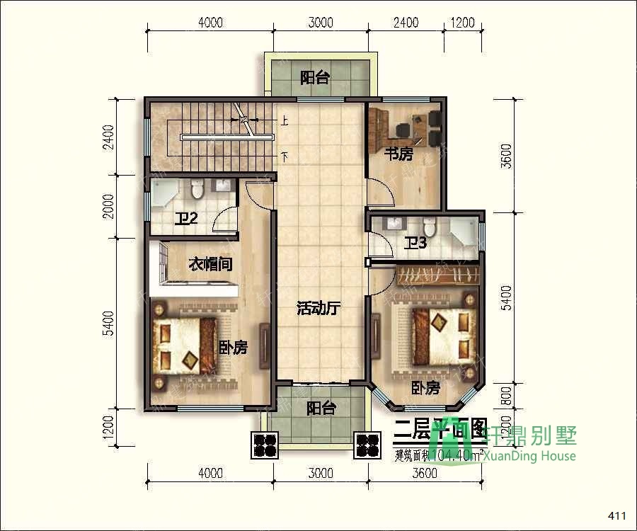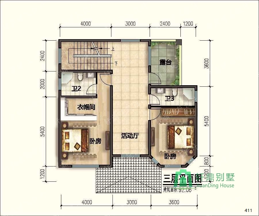 樓層層高:一層層高4.0米,二層層高3.6米,三層層高3.3米。