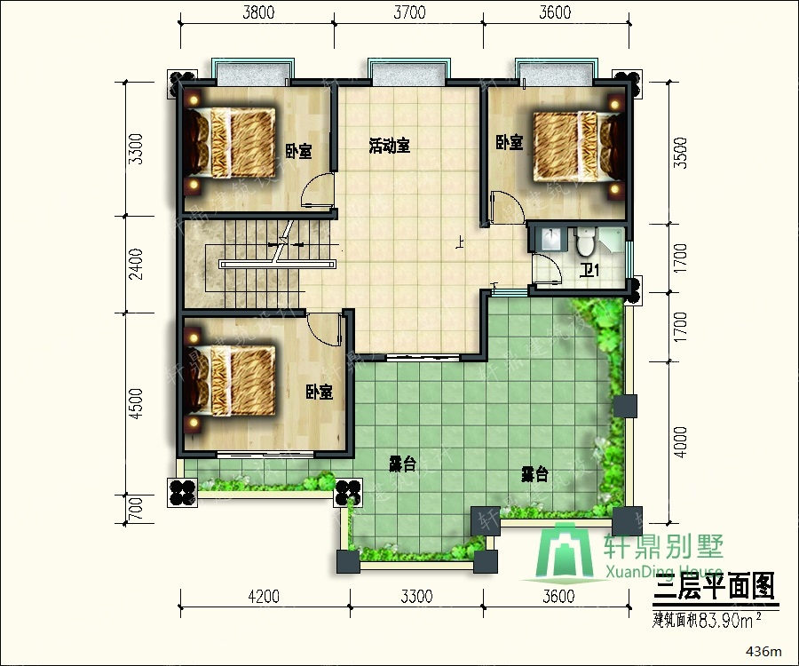 樓層層高:一層層高3.6米,二層層高3.3米,三層層高3.3米。