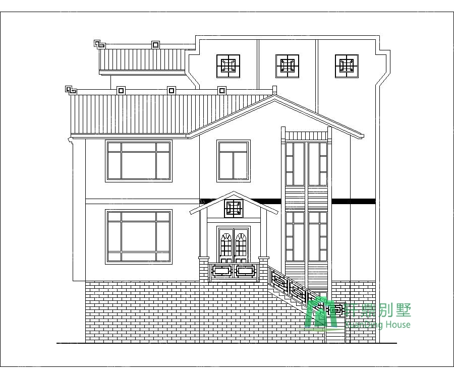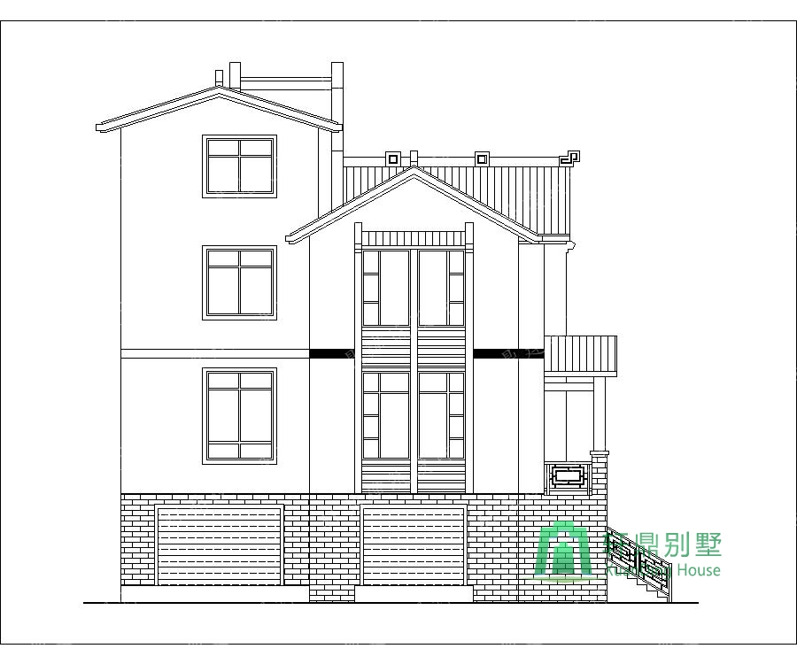中式三層自建房屋設(shè)計(jì)圖,帶有地下室,配套庭院設(shè)計(jì)