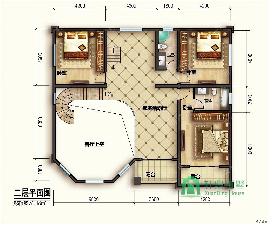 圖紙編號(hào):Z477m    圖紙價(jià)格:698    主體造價(jià):50-55萬