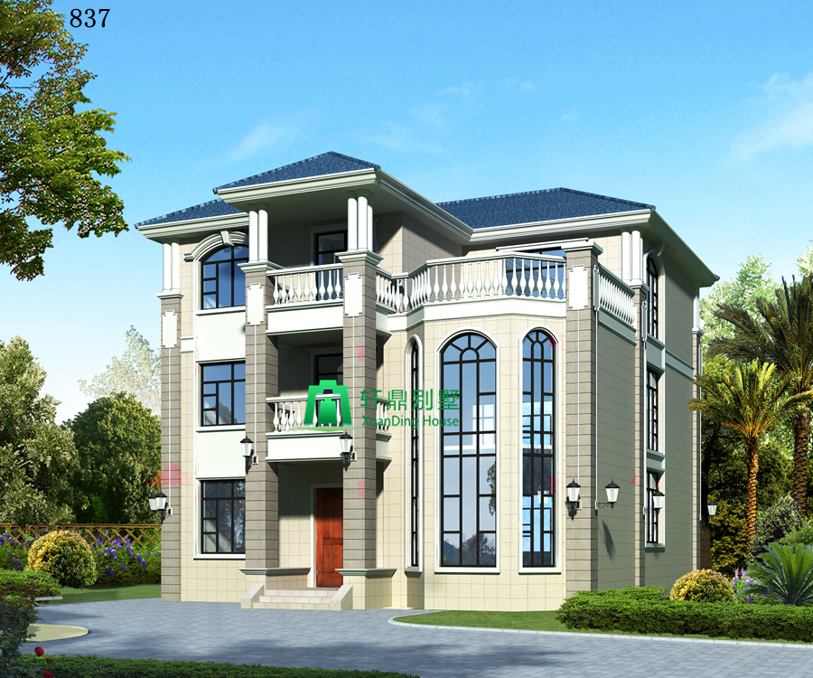 農(nóng)村三層自建房別墅12.5米*13米,八角落地窗設(shè)計,大氣十足