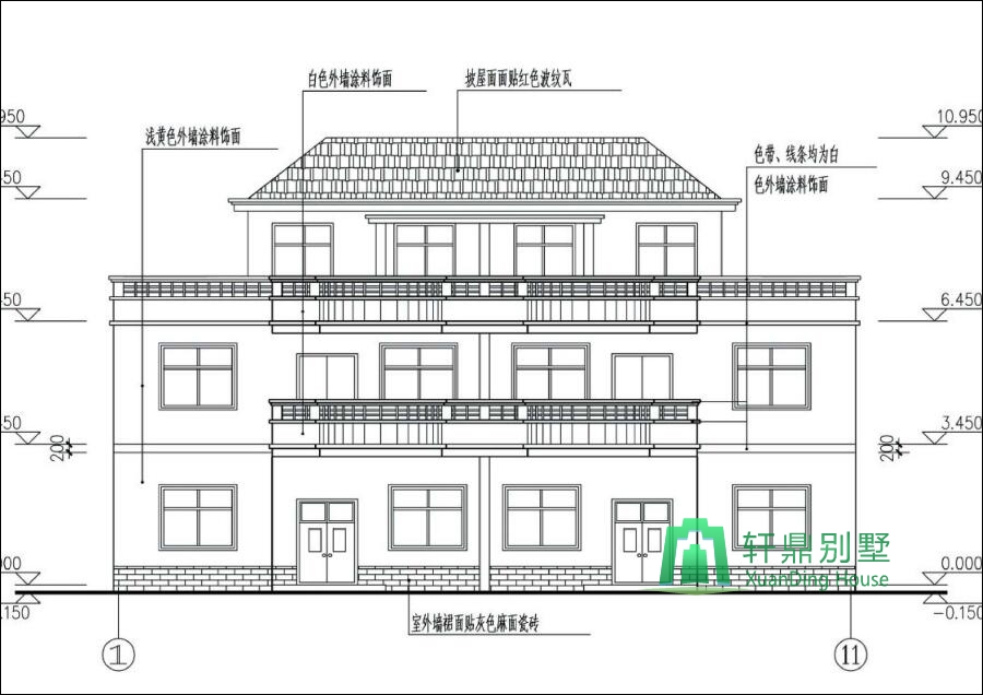 建筑層數(shù):地上3層,建筑總高度(到屋脊高度):10.95米,建筑面積:475平方米。