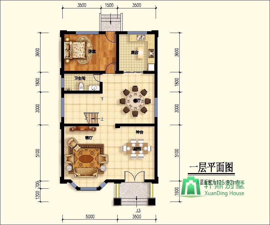 一層:客廳、堂前、廚房、餐廳、臥室、衛(wèi)生間。