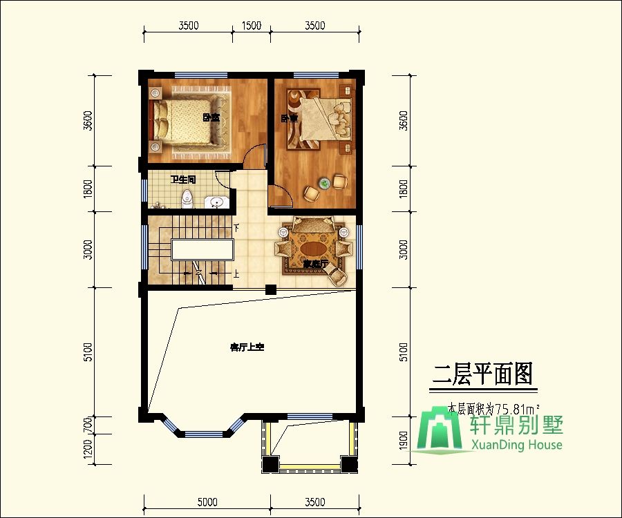 三層:臥室(帶陽臺)、臥室3、休閑廳、衛(wèi)生間。