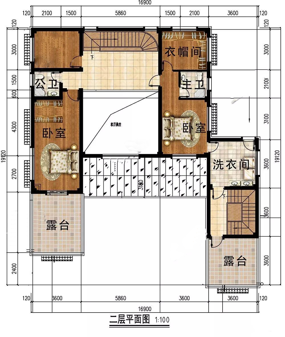 二層:客廳挑空,提升別墅檔次;2個(gè)臥室,其中1個(gè)連接露臺(tái),在此喝茶觀景方便。另一個(gè)連接洗衣房,方便晾曬衣物