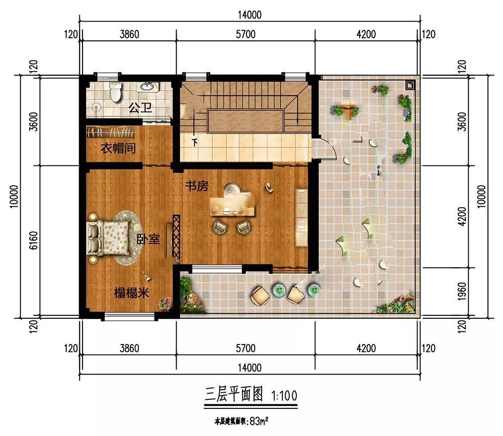 三層:一個(gè)套房設(shè)計(jì),帶來(lái)大大的生活享受;露臺(tái)寬闊,可以打造成空中花園,閑時(shí)喝茶種花,愜意悠然。