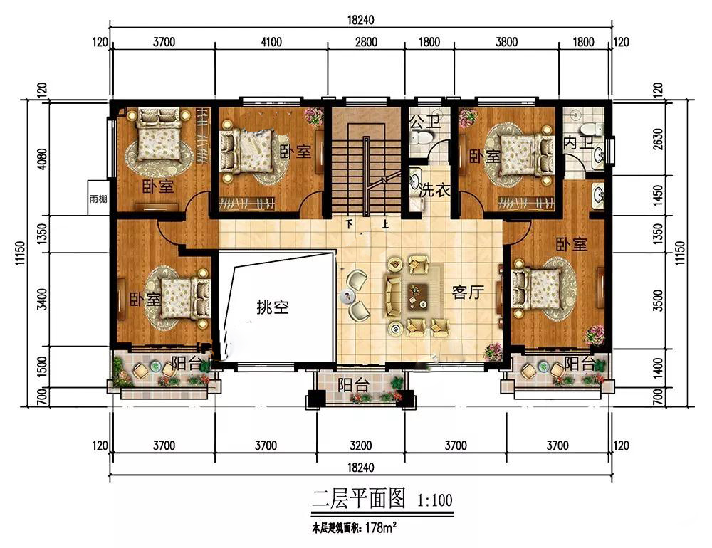 二層:客廳挑空,連通小陽(yáng)臺(tái),室內(nèi)采光通風(fēng)方便;5個(gè)臥室,2個(gè)連通陽(yáng)臺(tái),提升居住舒適度。