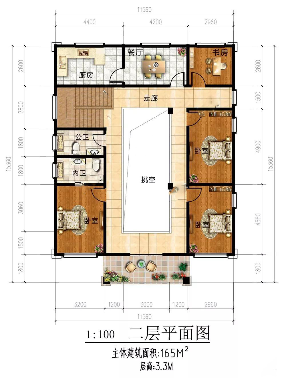 二層:第2戶人家,3個臥室,主次分明,家人居住便利舒適;設有書房,家人辦公學習方便,不會被打擾;廚房餐廳連通,用餐氛圍熱鬧溫馨;在小陽臺上品茶觀花,倍感舒適