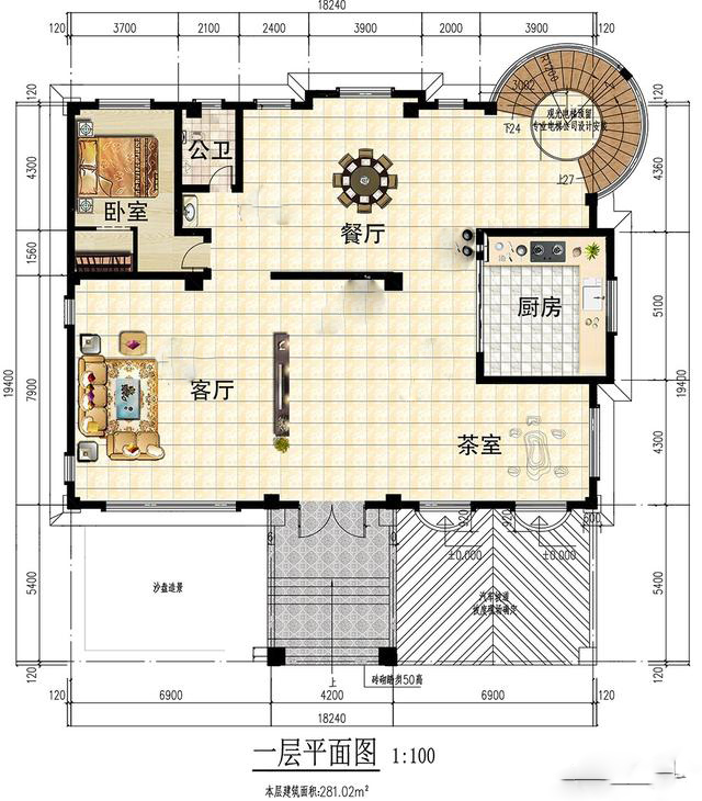 別墅是框架結(jié)構(gòu),毛坯造價140-180萬,開間18.24米,進(jìn)深19.4米,占地面積281.02平方米,建筑面積1301.7平方米,建筑高度18.3米