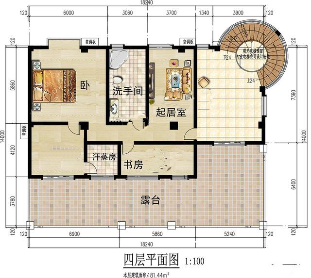 四層:休閑廳、起居室、臥室、書房、健身房、汗蒸房、洗手間、露臺