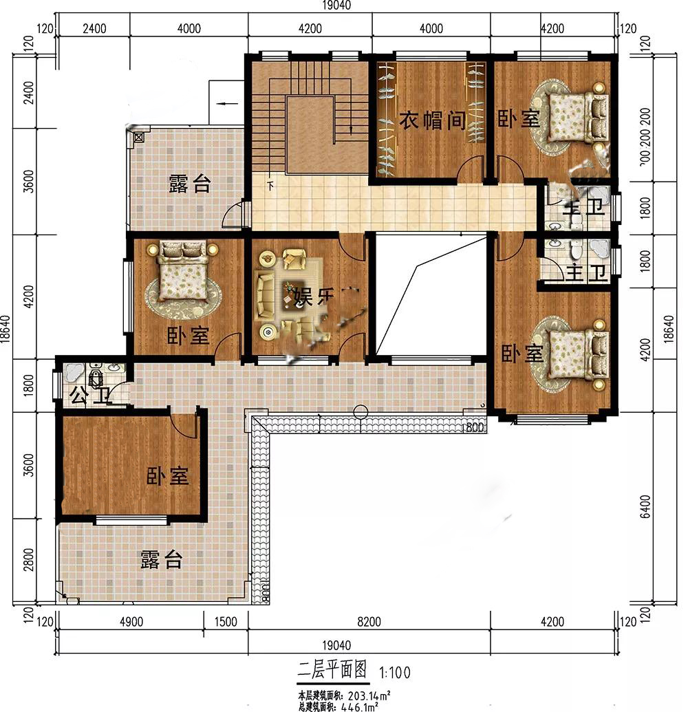 二層:4個(gè)臥室,滿足家人居住需求;設(shè)有衣帽間,方便整合家人衣物,干凈整潔;設(shè)有娛樂室,在此休閑娛樂,放松心情;2個(gè)小露臺(tái),在此看書、喝茶、曬太陽,愜意舒適
