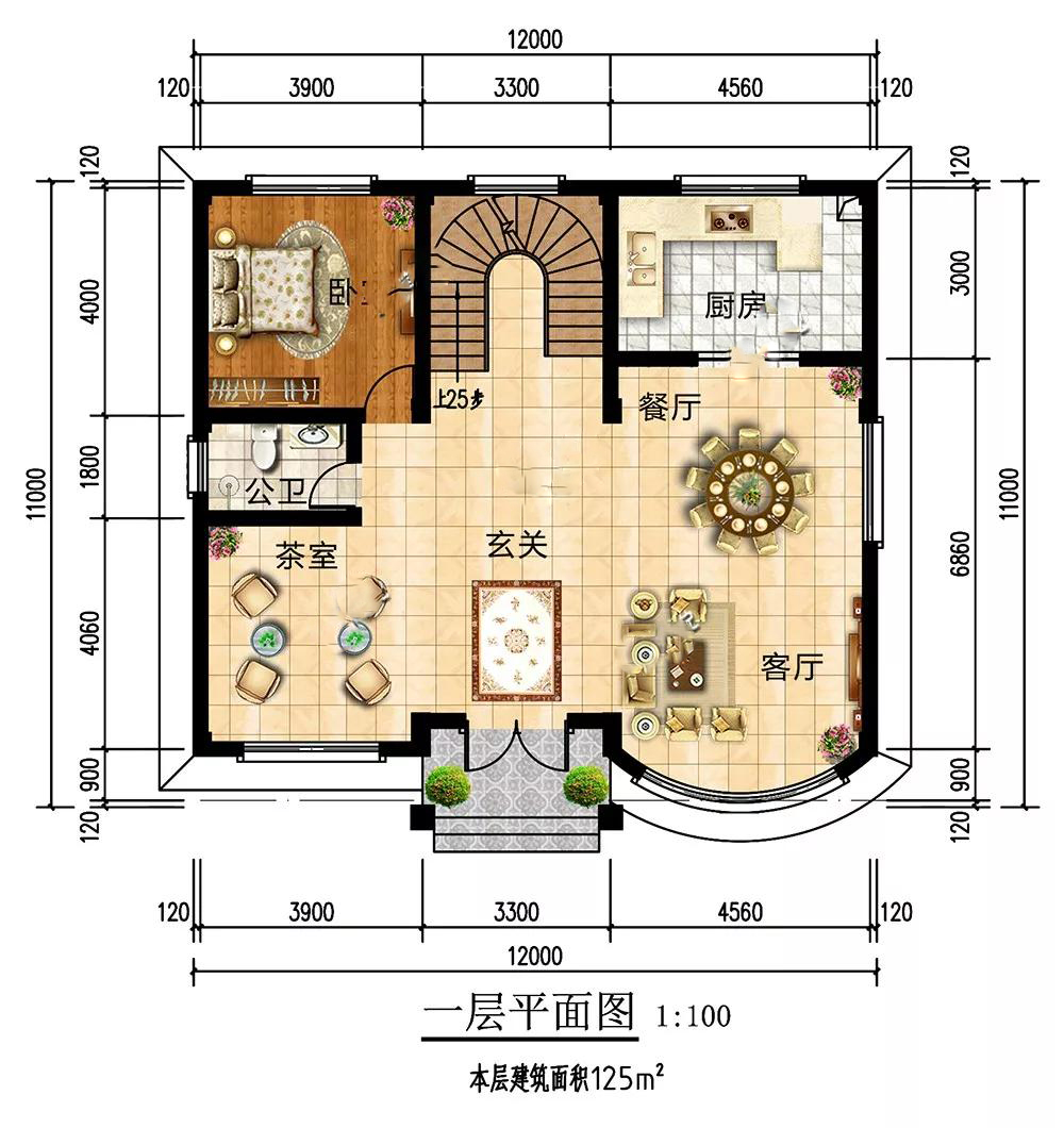 開(kāi)間12米,進(jìn)深11米