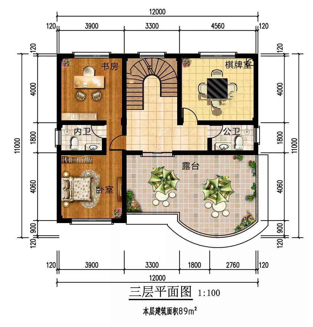 三層:臥室套間設(shè)計(jì),帶有書(shū)房,家人辦公休息不會(huì)被打擾;設(shè)有棋牌室,方便家人休閑娛樂(lè),忘記煩憂;空曠的露臺(tái)可以打造成空中花園,賞花喝茶,享受靜謐生活。