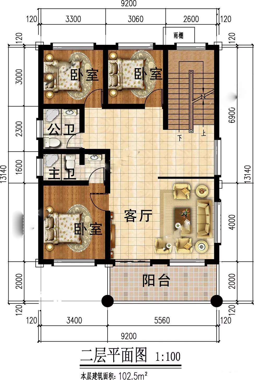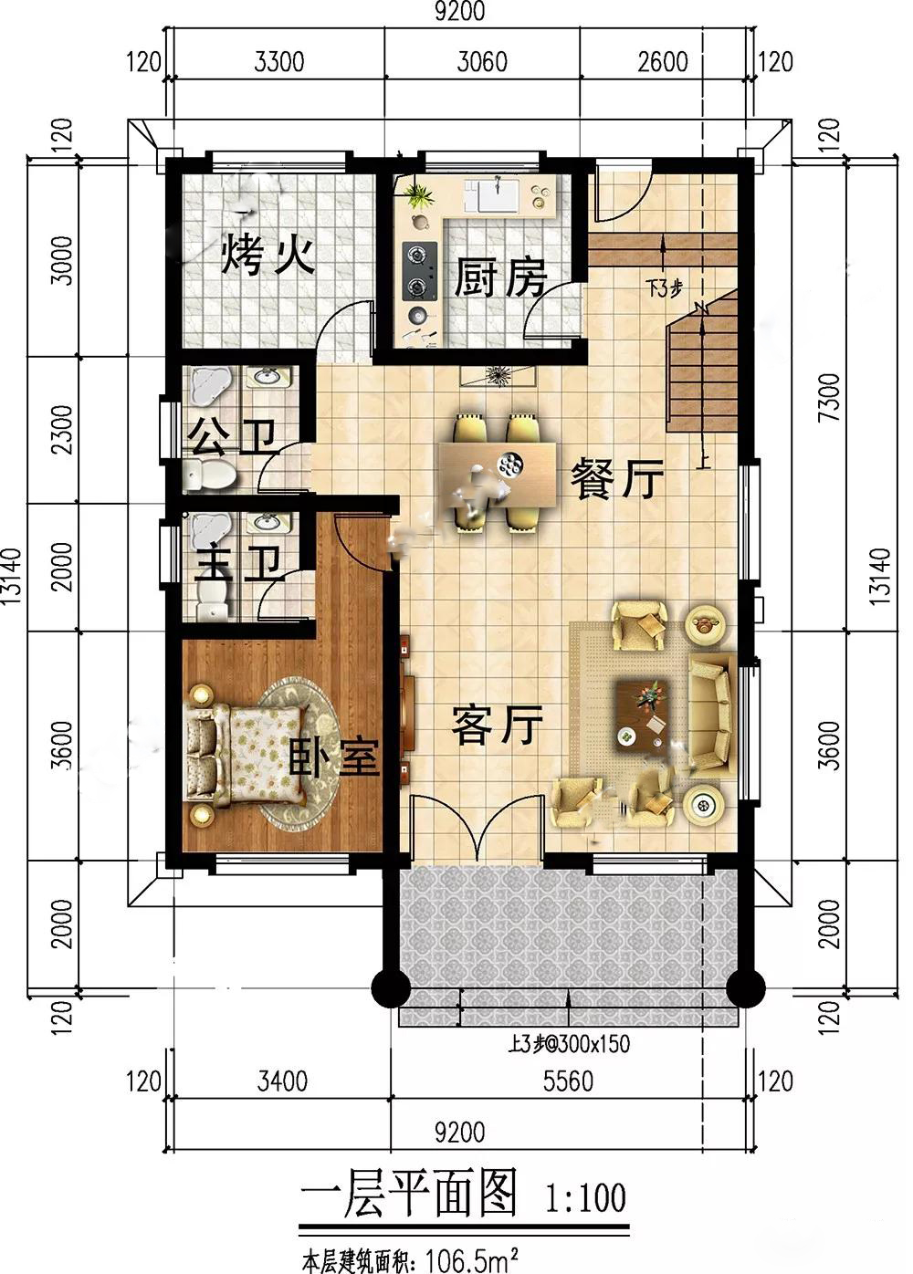 一層:入戶(hù)設(shè)神位,符合鄉(xiāng)村風(fēng)情民俗;客廳餐廳一體,設(shè)后門(mén),家人用餐干凈熱鬧;帶衛(wèi)生間的臥室,適合給家里老人居住,起居便利;設(shè)烤火房,方便家人烤火聊天,增進(jìn)感情。
