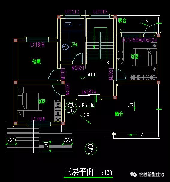 三樓設(shè)有2間客房、儲(chǔ)藏間、衛(wèi)生間及曬臺(tái)。