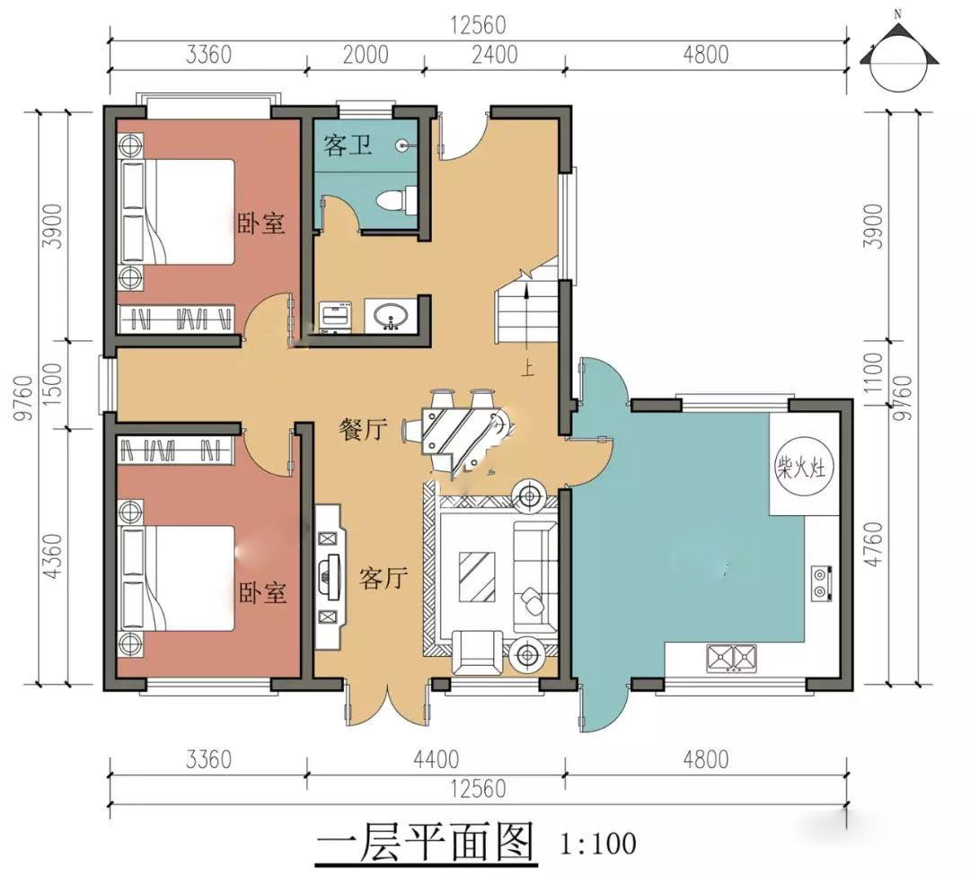 一層?xùn)|側(cè)獨(dú)立廚房,另設(shè)柴火灶方便家人使用。同時(shí),考慮到家人常住人口不多,因此每層空間僅設(shè)計(jì)了一間公衛(wèi)。首層兩臥室為老人居住場(chǎng)所,簡(jiǎn)約布局就足以。