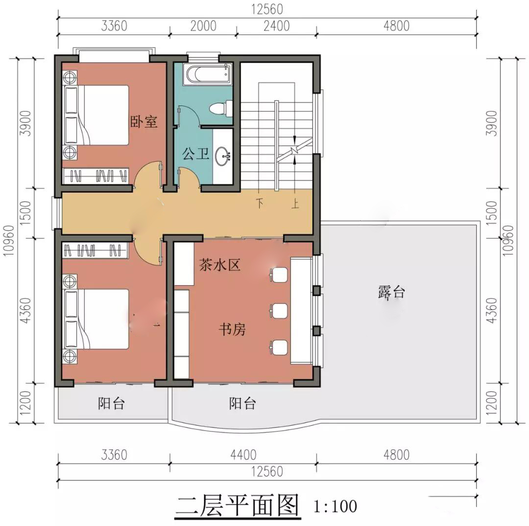 二層雙臥與學(xué)習(xí)書房,臥室與公衛(wèi)布局上下一致,降低施工難度。東側(cè)露臺(tái)區(qū)域空間大,可作為晾曬場(chǎng)所,也可單獨(dú)在這里建一間陽光房,享受愜意生活。