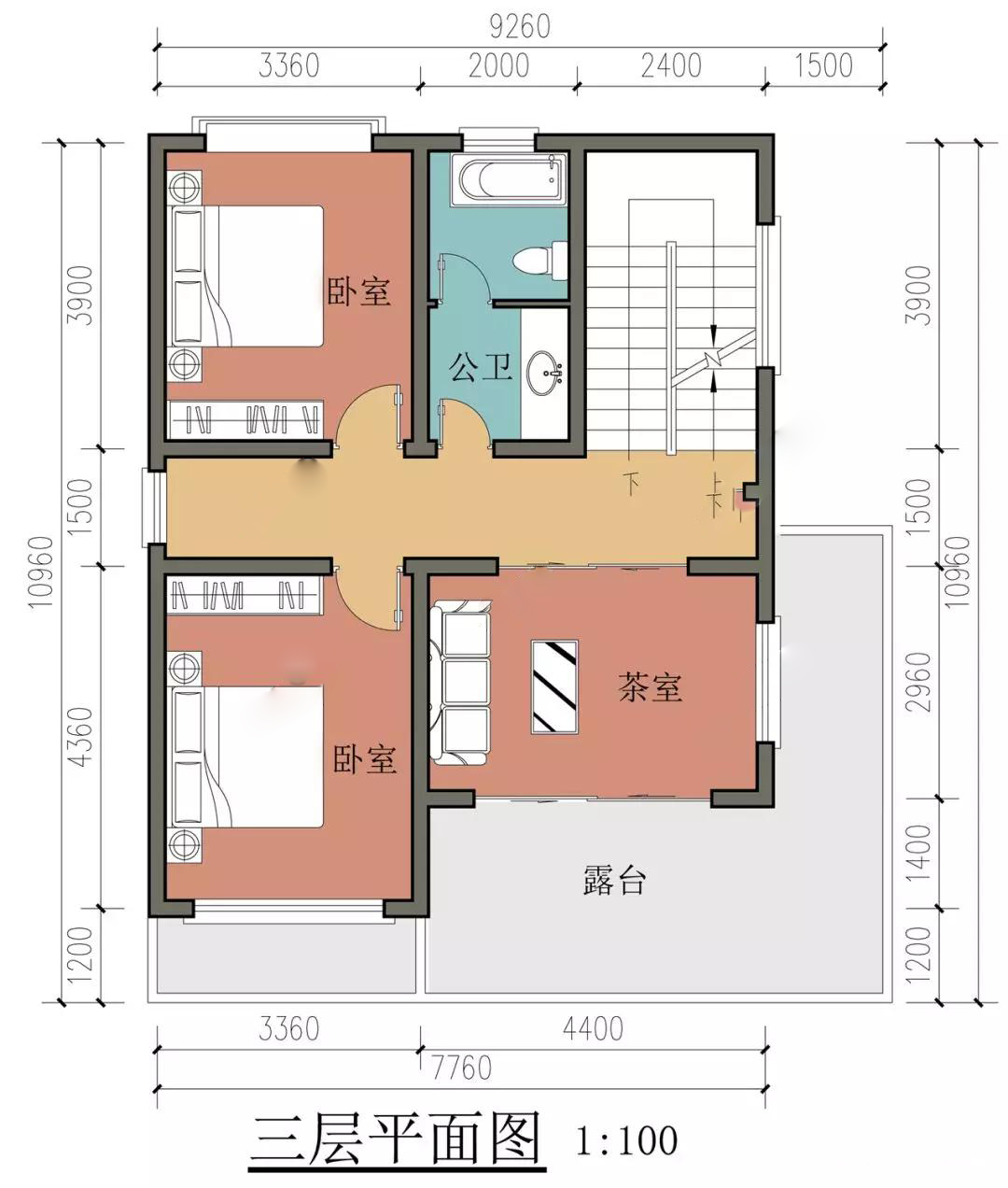 三層與二層布置無太大差別,宅地較小,就需要砍掉一些沒必要的裝飾,將空間賦予給臥室