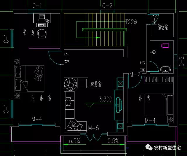 二層設有起居室、主臥室、臥室、書房、儲物室、衛(wèi)生間。(二樓臥室陽臺的設置,從功能上來說,增加了房間的采光,也更加具有時代氣息,外觀上講更時尚)