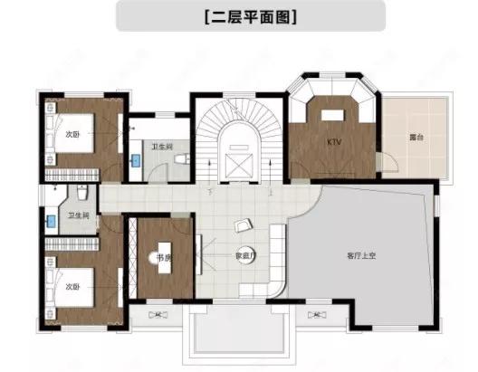 二層:家庭廳、書房、2臥室、2衛(wèi)生間、KTV、露臺。KTV室方便平時觀看電影、唱ktv,家中有客時也不至于無聊。