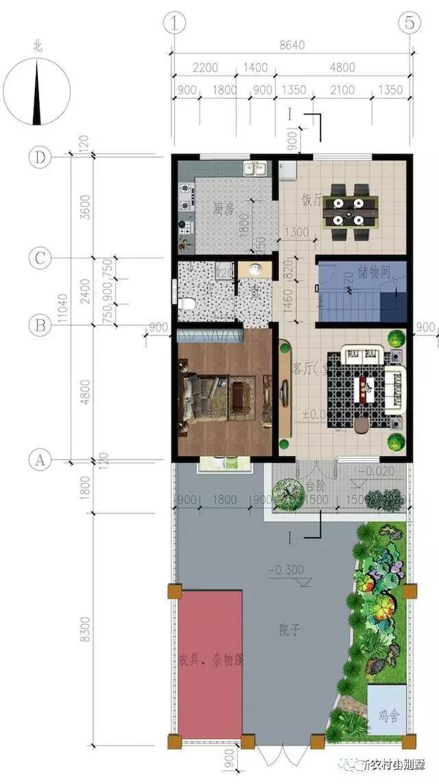 面寬8.6米,進深20米左右,房屋進深大概11米,南側(cè)為客廳和老人房,中間為樓梯間和衛(wèi)生間,北側(cè)為廚房和餐廳。