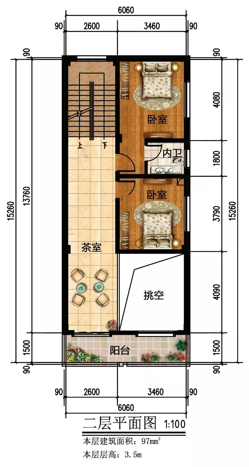 三層:3個(gè)臥室,大小適中,滿足家人起居;2個(gè)露臺,可以打造成小花園,喝茶看書,種花養(yǎng)魚,悠然自得。