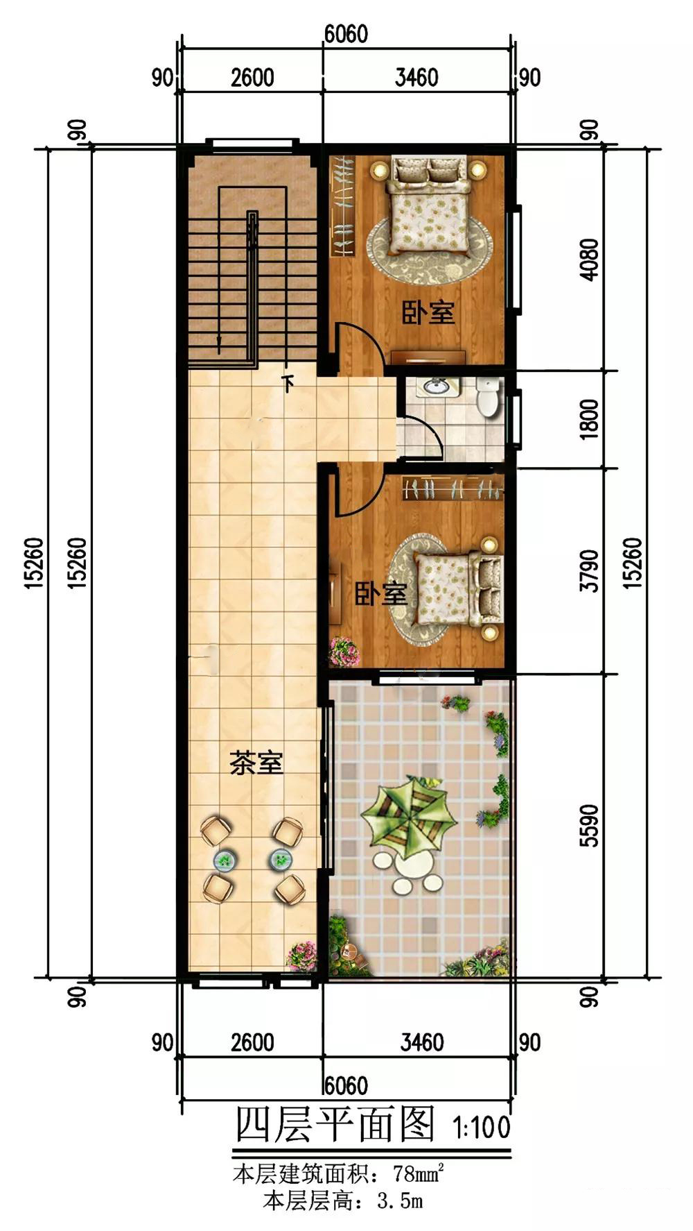 四層:臥室設(shè)置充裕,滿足家人居住外,還能方便接待親朋好友;露