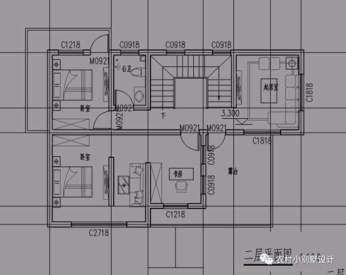 二層:1個主臥室、2個次臥室、1個書房、公衛(wèi)、露臺