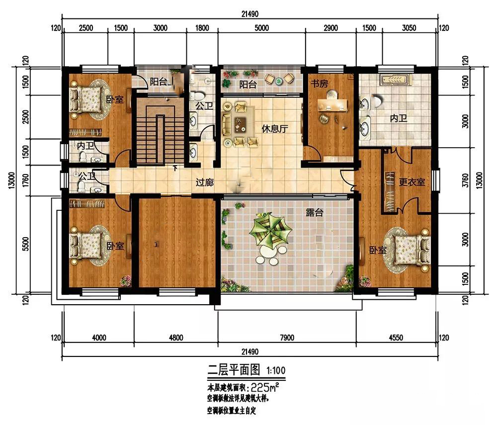 二層:3個(gè)臥室,滿足起居,還有1個(gè)房間可自由靈活安排;書房方便看書和辦公;露臺(tái)滿足觀景和晾曬,加強(qiáng)采光和通風(fēng)