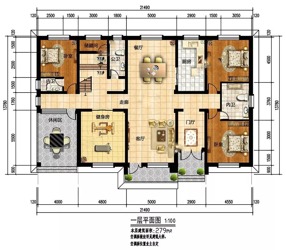 一層:入戶設(shè)門廳,空間劃分明確合理;休閑區(qū)和健身房,提升生活品質(zhì);3個(gè)臥室3個(gè)洗手間,生活起居便利。