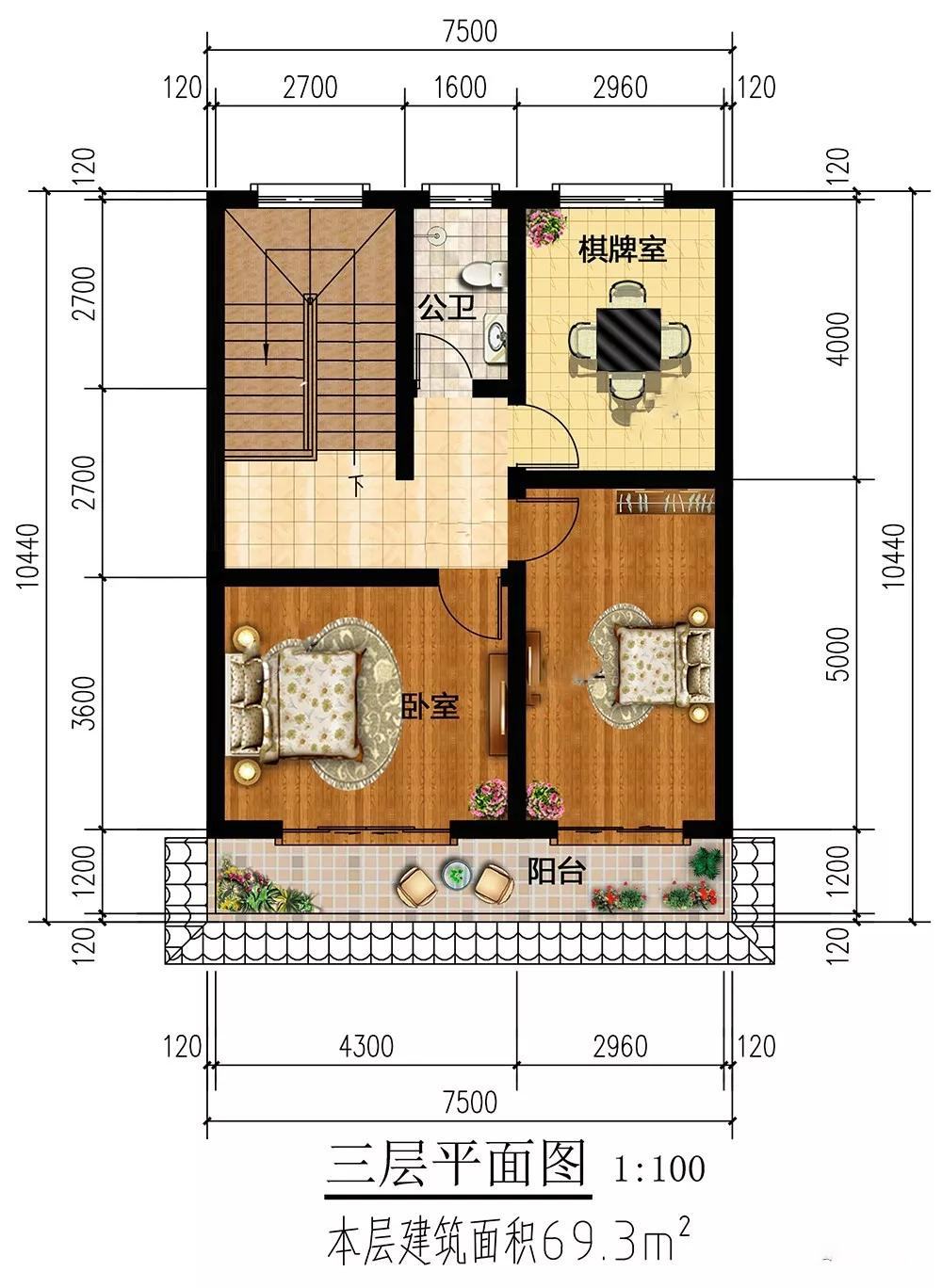 三層:臥室設置充裕,可招待親朋好友留宿;棋牌室豐富娛樂生活,帶來生活樂