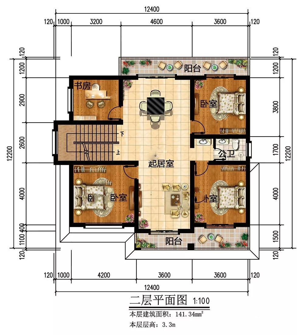 二層:3個臥室大小合理,滿足家人的日常起居;南北通透陽臺,通風(fēng)采光效果佳,觀景視野開闊舒暢。