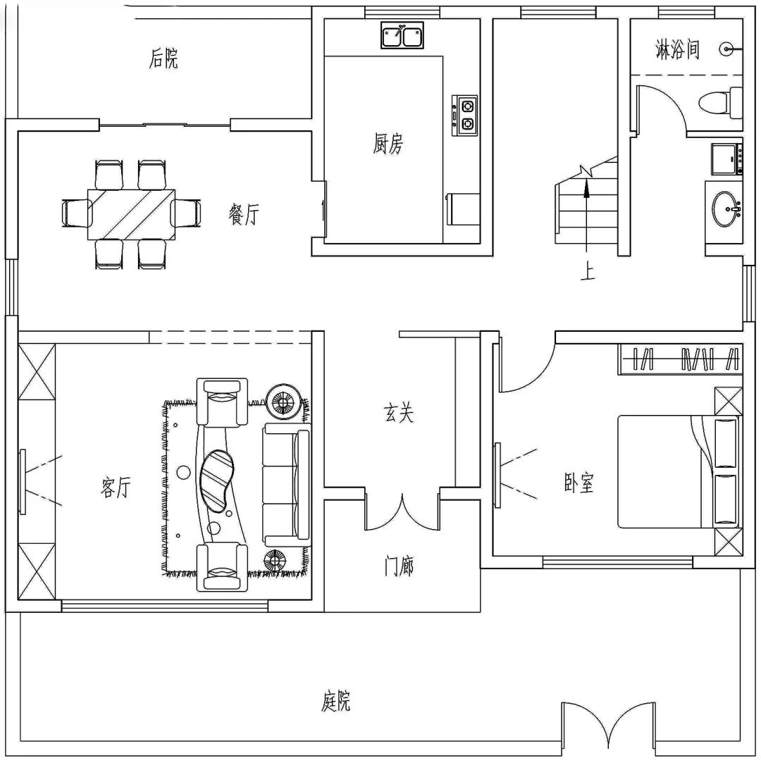 一層布局相對合理,父母房位于東側(cè)便于采光,南側(cè)的門廊與玄關(guān)相連,西側(cè)的客廳、餐廳與后院以南北貫通之勢呈現(xiàn)使得室內(nèi)空間感更加開闊。