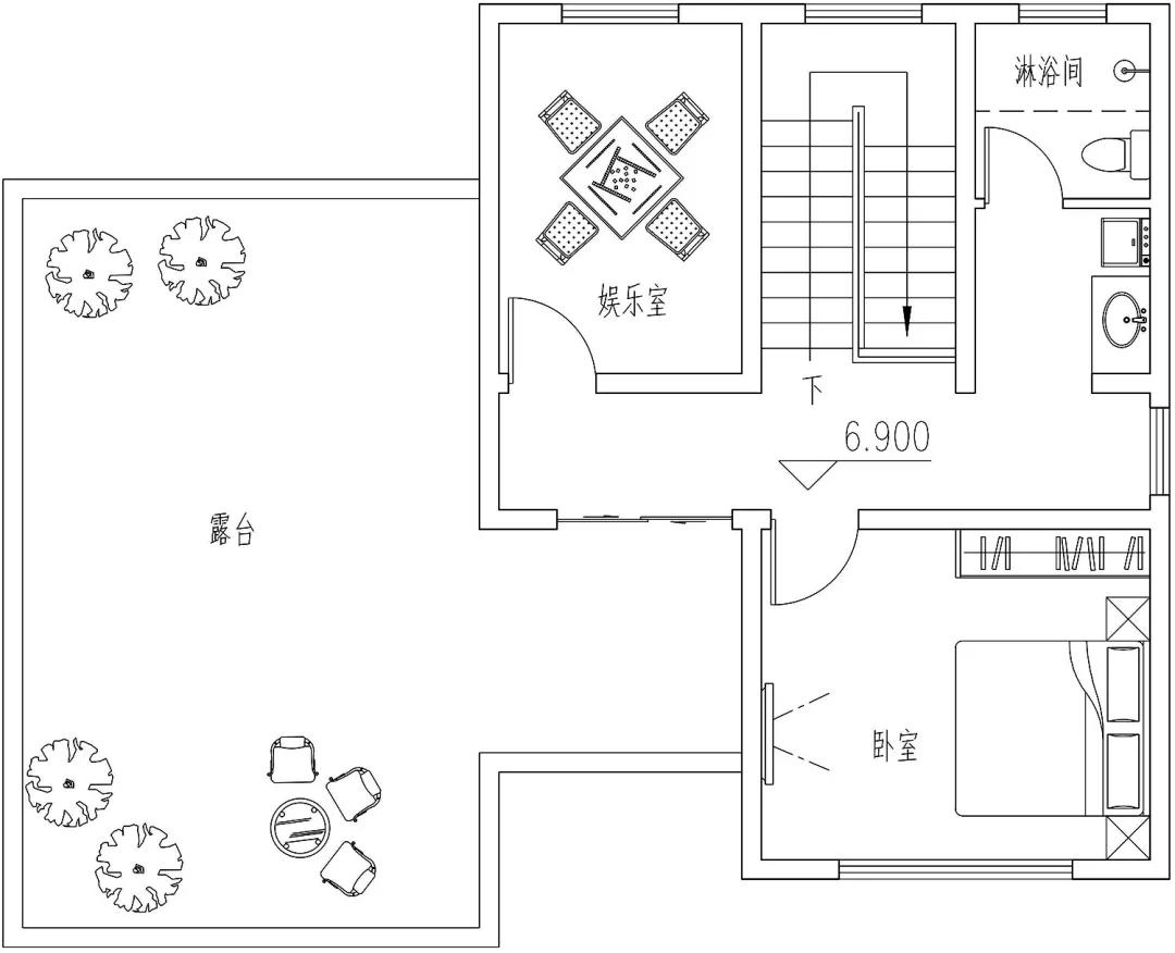 三層設(shè)置娛樂室可供一家休閑,大露臺便于生活晾衣可供孩子玩耍,一家人休息的時候在上面喝茶賞月其樂融融。