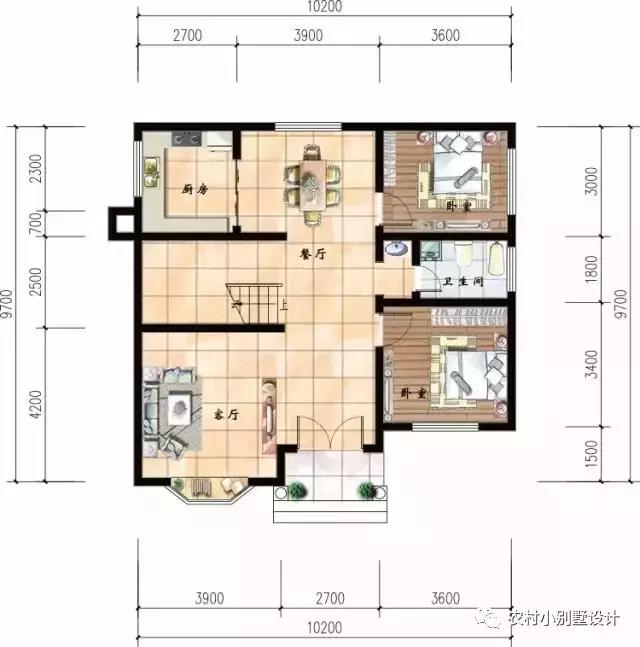 該戶型適用于人口不多的家庭,4個房間,2個衛(wèi)生間,在面積不是很大的情況下,這樣設(shè)計不會顯得過于緊湊,而麻雀雖小,五臟俱全,該有的也有了,造價還低,一般的家庭都能建得起。
