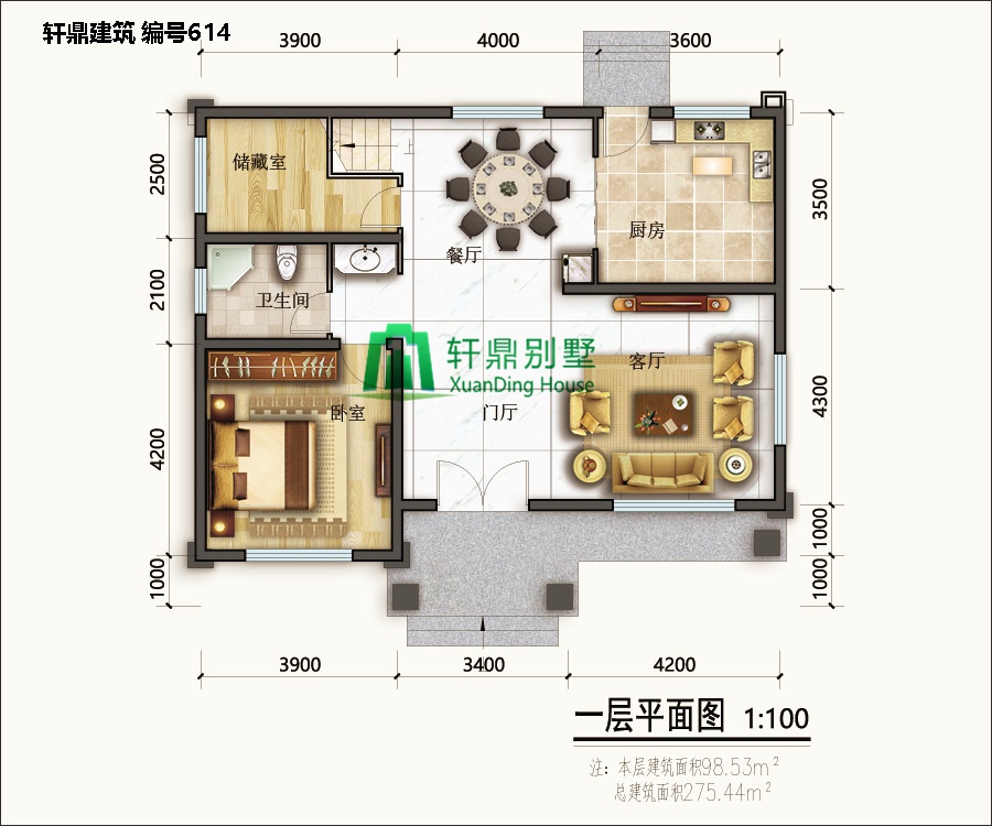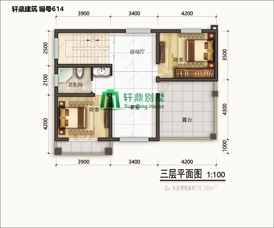 建筑層數(shù):地上2層,建筑總高度(到屋脊高度):12.499米,建筑面積:275.44平方米。